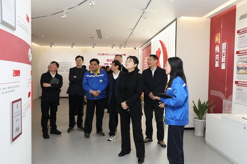 3月6日,省工商聯(lián)黨組成員、副主席吳海瑜一行蒞臨景興紙業(yè),開展實地調研與座談交流。嘉興市工商聯(lián)黨委委員、副主席吳學哲,平湖市委常委、統(tǒng)戰(zhàn)部部長沈志林等陪同調研。公司董事長朱在龍、總經理助理沈守賢等給予熱情接待。