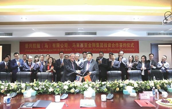 11 月16 日下午,景興控股(馬)有限公司與馬來西亞金獅集團合作簽約儀式在景興紙業研發大樓707 會議室舉行。出席本次簽約儀式的馬方嘉賓有:雪蘭莪州政府執行委員鄧章欽、雪蘭莪州投資局克文達、金獅集團董事長鐘延森、馬來西亞駐滬總領事館貿易與投資處投資領事詹盛福等;中方嘉賓有:嘉興市委副書記孫賢龍、平湖市委書記祁海龍、平湖市常務副市長錢勇彪、平湖市工業副市長陳群偉、嘉興外事辦主任沈文平、曹橋街道黨委書記盛琴琴、曹橋街道辦事處主任楊金平、中國保利集團CEC 輕工工程有限公司董事長陳志明等。公司董事長朱在龍及全體高管出席簽約儀式。